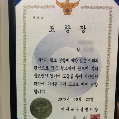 임직원 경찰서장 표창장